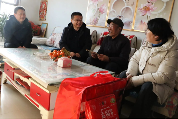 李德宏副會長一行還走訪慰問了高臺縣新壩鎮(zhèn)3戶困難群眾,每戶送去1000元的慈善救助金和1床棉被,給他們帶去了黨和政府以及社會各界愛心人士的溫暖和關懷。在困難群眾家中,李德宏與受助群眾面對面促膝交流,詳細了解他們家庭中的生產生活情況,鼓勵他們堅定信心,積極樂觀面對眼前困難,努力創(chuàng)造幸福美好生活。同時,叮囑鎮(zhèn)村干部及民政部門負責人,要時刻把困難群眾的冷暖放在心上,用心用情落實好各項民生保障政策,精準對接群眾需求,切實為困難家庭排憂解難,全力做好特殊群體的關愛幫扶工作,確保他們度過一個歡樂、祥和、溫暖的新春佳節(jié)。