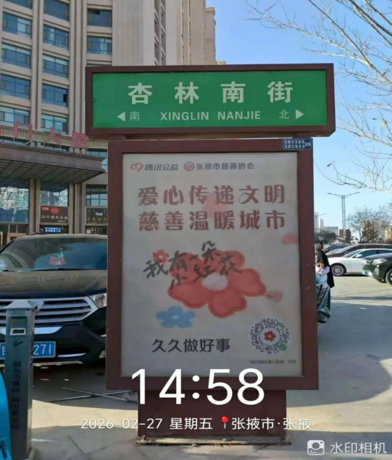 路名牌指引方向,小紅花傳遞溫暖,自2025年11月-2026年2月,張掖市甘州區(qū)城市主次干道20個(gè)小紅花路名牌,呈現(xiàn)在市民的生活中。當(dāng)市民步履匆匆穿梭街頭,當(dāng)游客駐足辨別方向,這抹藏在路名牌上的紅色善意,便會(huì)悄然映入眼簾,將“向善而行”的理念悄悄傳遞。讓新春的張掖,既有煙火溫情,更有公益力量。