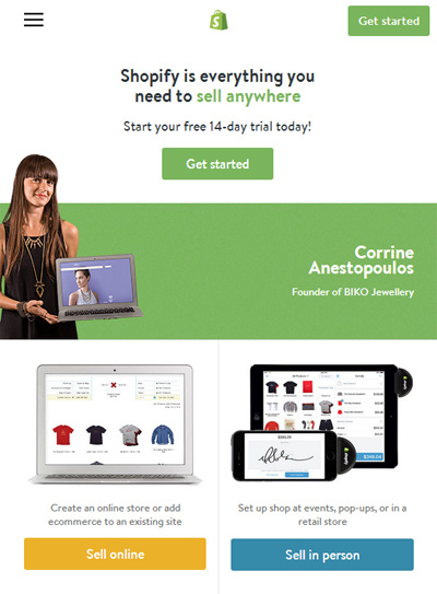 我們發(fā)現(xiàn),Shopify 并沒(méi)有像 Amazon 一樣采用復(fù)雜的頁(yè)面布局,更沒(méi)有放置太多的內(nèi)容在首頁(yè),這使他們可以輕而易舉地實(shí)現(xiàn)響應(yīng)式布局。簡(jiǎn)潔的網(wǎng)站設(shè)計(jì)可以讓訪客以最快的速度找到自己想要的東西。
